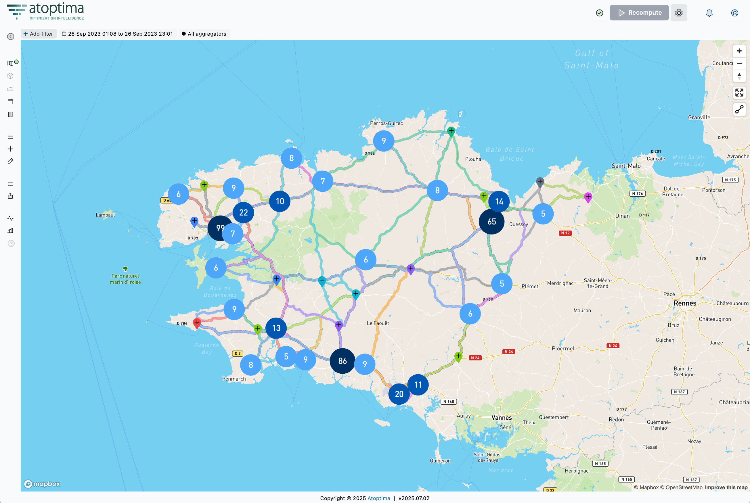 The optimization tool enabled a 20% reduction in fleet size, while minimizing the need for outsourced transport (reduction of 65%).It efficiently processed large datasets (+3,200 operations) while maintaining very fast calculation times (< 2 min).